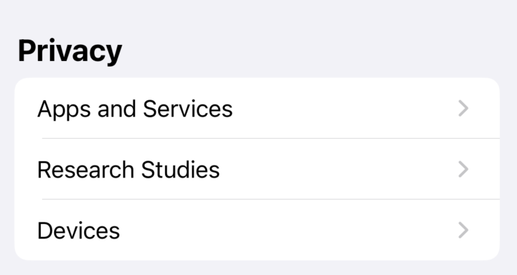 Scroll down to the "Privacy" section and tap "Apps and Services".