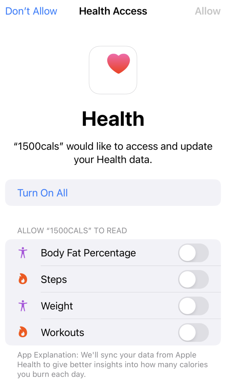 click "Don't Allow", but doing that and we won't be able to subtract calories you burn from exercise from